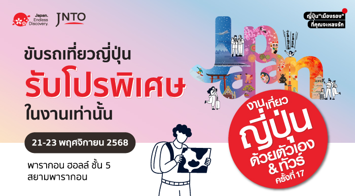 ทราเวลแฟร์เที่ยวญี่ปุ่น ที่ใหญ่ที่สุดในไทย กลับมาแล้ว! ขอเชิญชวนผู้ที่สนใจท่องเที่ยวประเทศญี่ปุ่นแวะมาเยี่ยมชมงาน เที่ยวญี่ปุ่นด้วยตัวเอง & ทัวร์ ครั้งที่ 17 วันที่ 21 - 23 พฤศจิกายน 2568 (ศุกร์ - อาทิตย์) ณ พารากอน ฮอลล์ ชั้น 5 สยามพารากอน เวลา 10.00-20.00 น.