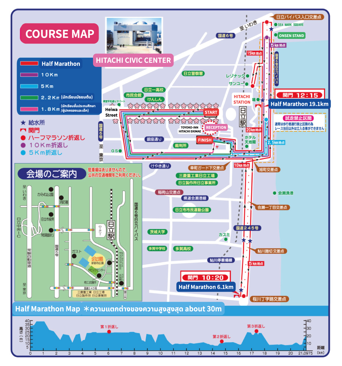 แพ็คเกจตั๋ววิ่ง Half Marathon (ระยะ 21.1 km / 10 km / 5 km) พร้อมโรงแรม 2 คืนและรถเช่า Class S : 3 วัน